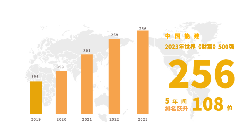 8月2日,2023年《財富》世界500強榜單公布,中國能源建設(shè)集團有限公司以營業(yè)收入548.9億美元位列第256位,較上年排名躍升13位,刷新歷史最好成績。