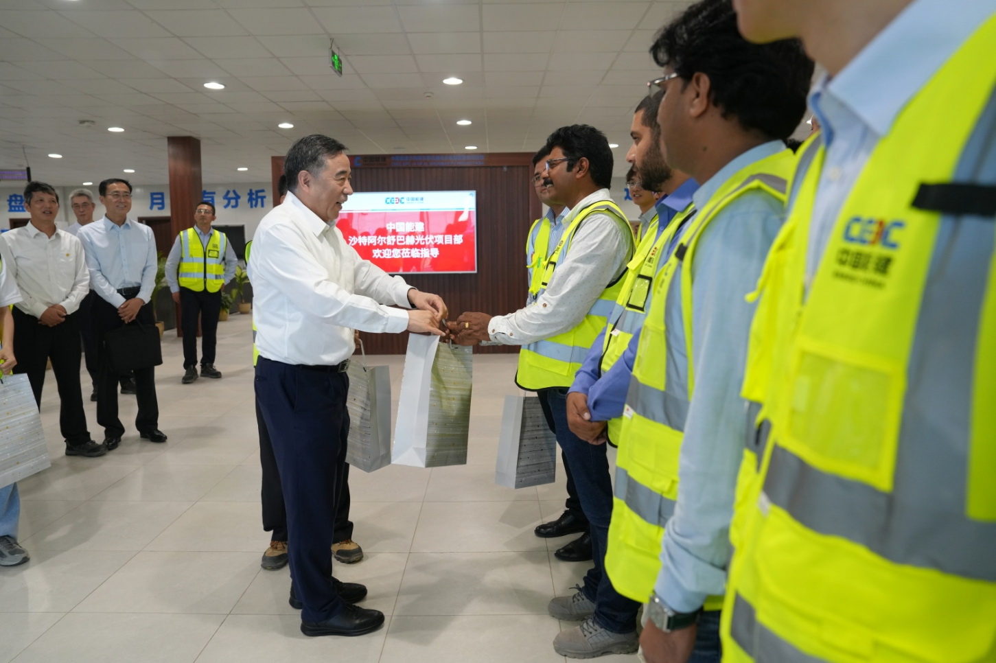 當(dāng)?shù)貢r間6月10日,中國能建黨委書記、董事長宋海良一行赴沙特阿爾舒巴赫2.6吉瓦光伏項目進行現(xiàn)場調(diào)研,開展端午節(jié)慰問活動,強調(diào)要堅定不移推動國際業(yè)務(wù)優(yōu)先優(yōu)質(zhì)協(xié)同發(fā)展,強化資源高效統(tǒng)籌,深化“三引領(lǐng)一合作”,全力打造更多“一帶一路”示范標(biāo)桿項目。