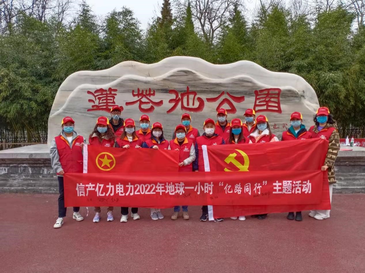 為積極宣傳地球一小時(shí)公益環(huán)保理念,落實(shí)“雙碳”目標(biāo),促進(jìn)節(jié)能環(huán)保,積極支持全球應(yīng)對(duì)氣候變暖行動(dòng),不斷深化國(guó)家電網(wǎng)思極先鋒“億心e意”共產(chǎn)黨員服務(wù)隊(duì)志愿服務(wù)能力,3月25日下午,信產(chǎn)億力電力黨支部在蓮花池公園組織開(kāi)展2022年地球一小時(shí)“億路同行”主題系列活動(dòng)啟動(dòng)式暨蓮花池公園清潔志愿服務(wù)。信產(chǎn)億力電力黨員干部、黨員發(fā)展對(duì)象、入黨積極分子、團(tuán)員和統(tǒng)一戰(zhàn)線成員等16人共同參與。