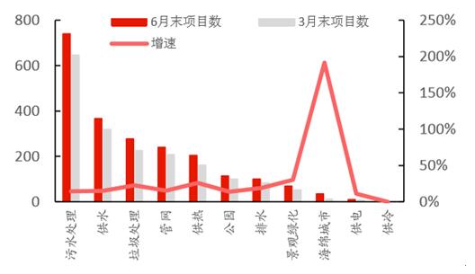 PPP在2016形成了熱點,截止2016年6月末,PPP全部入庫項目數(shù)量達9285個,總投資額達10.6萬億元;而環(huán)保方向的大概有1.4萬億元,在全行業(yè)中占比約13.2%;其中市政環(huán)保方向項目達2043個,較一季度末增長了322個;總投資金額達8919億元,增長了1633億元,增幅為22.41%。之所以舉足輕重,是因為市政環(huán)保類項目基本有相對成熟的盈利模式,在運營中能產(chǎn)生現(xiàn)金流,在PPP中屬于優(yōu)質(zhì)項目。