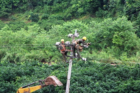 6月9日上午,國網(wǎng)江永縣供電公司搶修工作人員在10千伏桃粗線大泊水礦山分支線4號桿緊張有序地搶修因洪水造成的線路故障,該公司主要負責人來到現(xiàn)場,語重心長地反復叮囑現(xiàn)場工作人員要在確保安全的前提下,有條不紊推進搶修復電工作,要跟時間賽跑、跟天氣賽跑,在第一時間內(nèi)恢復供電,為群眾們防汛抗洪提供電力保障。經(jīng)過六個小時的緊張奮戰(zhàn),工作人員安全順利恢復了該條線路的供電。