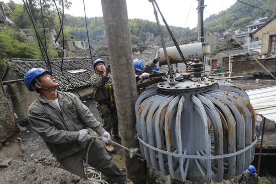 中國(guó)電力網(wǎng)訊 11月4日一大早,在浙江寧波鄞州區(qū)塘溪鎮(zhèn)東山村,三輛電力工程車正載著二十余名工作人員沿著山路蜿蜒而上,當(dāng)天,他們的工作任務(wù)是拆除大嵩片區(qū)內(nèi)最后一臺(tái)屋頂變壓器。