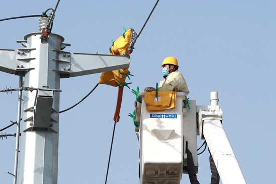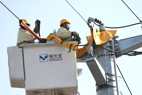中國電力網(wǎng)訊 1月12日,在濰坊壽光市田柳鎮(zhèn)朱家村,國網(wǎng)壽光市供電公司帶電作業(yè)人員對10千伏后疃線127號桿加裝絕緣護(hù)套,同時(shí)對裸露部分進(jìn)行絕緣化封包處理,及時(shí)消除線路運(yùn)行隱患,保障電網(wǎng)迎峰度冬期間安全可靠運(yùn)行。