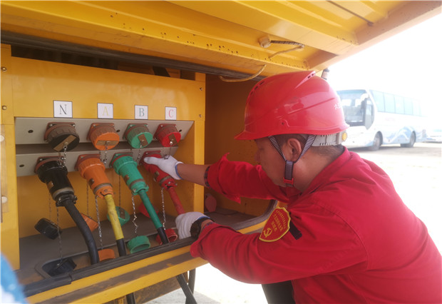 在接到開工儀式保電工作任務(wù)后,六五四供電分局高度重視,積極對接政府部門,了解用電需求,制訂詳細的保供電方案,落實專人負責、服務(wù)到位,提前一天組織分局黨員突擊隊的保電人員對涉及活動區(qū)域的重要線路和電力設(shè)備開展常態(tài)巡視,排查并消除可能出現(xiàn)影響正常供電的安全隱患和缺陷,保障保電工作零故障、零停運,并根據(jù)現(xiàn)場需要,準備發(fā)電車一輛供儀式現(xiàn)場用電設(shè)備使用,全力打造項目開工儀式保電安全網(wǎng)?;顒赢斎丈衔纾ぷ魅藛T及發(fā)電車提前進入保電現(xiàn)場,連接、調(diào)試開工儀式用電設(shè)備,并對相關(guān)設(shè)備進行了檢查,蹲守保電現(xiàn)場,提高保電機動性,確保了開工儀式用電萬無一失。