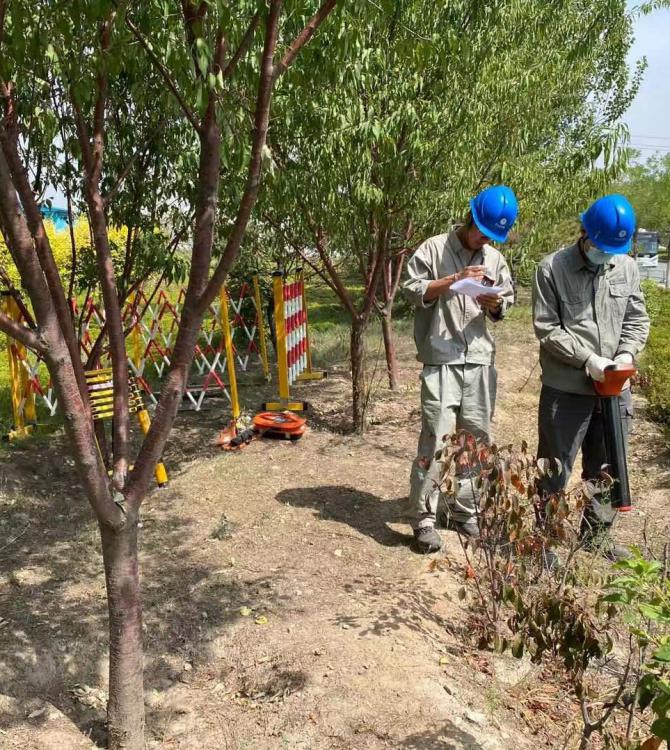 分局了解相關(guān)情況后,立即組織配電檢修試驗(yàn)班人員攜帶儀器前往現(xiàn)場(chǎng)。經(jīng)現(xiàn)場(chǎng)勘察了解,該校區(qū)擴(kuò)建區(qū)域涉及原居民用房及垃圾場(chǎng)所在地,位于小區(qū)、商業(yè)樓和沙河一小北區(qū)中間地帶,用戶較多,地下線路比較復(fù)雜,且部分電纜位于擴(kuò)建項(xiàng)目未拆除墻體內(nèi)側(cè),為保障電纜在施工過(guò)程中不受外力破壞、確保周圍用戶用電不被影響,工作人員在征得用戶同意后,對(duì)內(nèi)外側(cè)整段電纜進(jìn)行了探測(cè)。工作人員熟練調(diào)試儀器參數(shù),沿著電纜起點(diǎn)逐步探測(cè),耐心排除干擾信號(hào),確保精準(zhǔn)判斷電纜走向。頭頂夏日灼熱陽(yáng)光,在兩個(gè)小時(shí)的緊張工作后,終于確定了該區(qū)域所有電纜路徑及埋深,此時(shí)已過(guò)了中午。該小學(xué)擴(kuò)建項(xiàng)目負(fù)責(zé)人向分局工作人表達(dá)了感謝:“這么大熱天,真是辛苦你們了,要不是有你們這么專業(yè)的儀器,我們施工風(fēng)險(xiǎn)肯定會(huì)增加,工期也可能會(huì)有延誤,供電局的技術(shù)和服務(wù)真是沒的說(shuō)。”