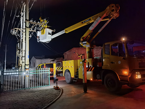 接到通知的應(yīng)急搶修小組五人以最快的速度到達單位,此時此刻幾人臉上睡意全無,已然投入到搶修狀態(tài)當(dāng)中。在了解完搶修任務(wù)后幾人馬上行動起來進行準(zhǔn)備工作。二十分鐘后所有人員出發(fā),在車上,工作負責(zé)人張于斯強調(diào)道:“現(xiàn)在是凌晨,外面氣溫達到零下二十一度,如果你們要是在上面進行更換熔斷器的時候有任何身體上的不適都要立即停止工作,下來暖和一會兒再干,干的慢點不怕,要保證身體處于一個良好的狀態(tài),安全才是最基本的工作前提條件。”到達現(xiàn)場后,該處人員與礦區(qū)分公司負責(zé)人進行工作任務(wù)對接,重合閘退出并許可工作后,立即開始搶修。天寒地凍,讓搶修人員隔著三層防護手套依舊無法阻擋冷空氣將雙手凍僵,但在絕緣斗臂車上操作的人員手上的速度并沒有因此而放慢,經(jīng)過三十分鐘的努力將損壞的熔斷器更換完成。為了避免二次事故,該處的搶修人員需要等送電完成才能離開,完成搶修后礦區(qū)供電分公司的同事立刻安排送電,低壓開關(guān)合上所有在場的工作人員的心同街道上的路燈一起明亮了起來,他們在黑夜里堅守在崗位上準(zhǔn)備迎接新一年的到來。