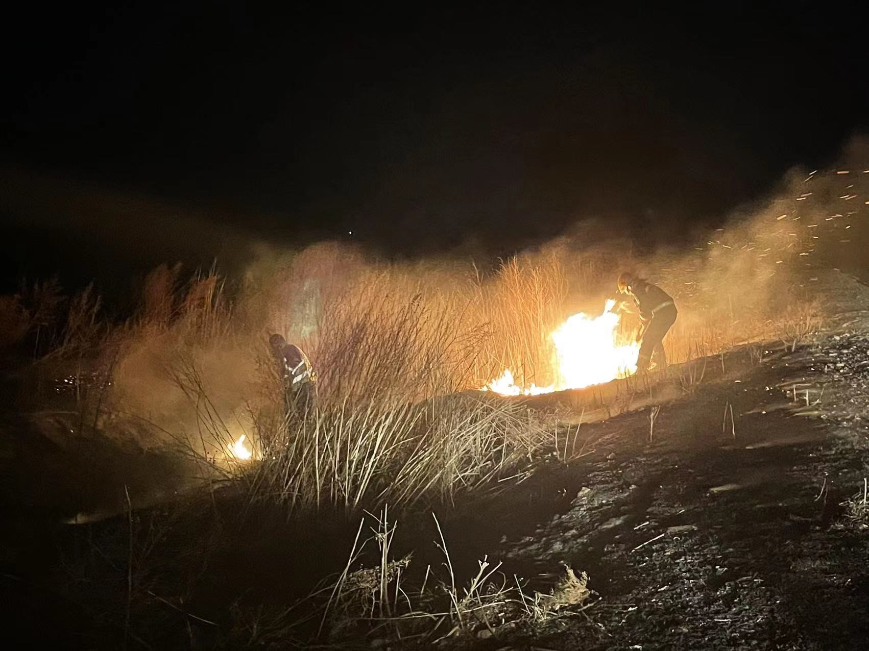 電力人員復(fù)查火星零點復(fù)燃情況(聶馨晨 攝)