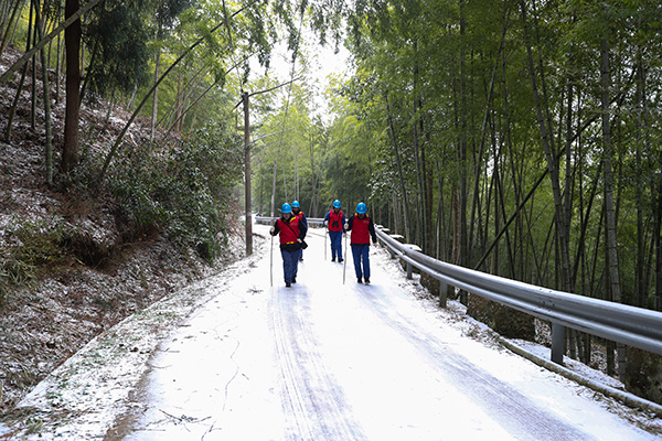 中國電力網(wǎng)訊 1月7日清晨,在平均海拔700米以上的浙江寧海雙峰山區(qū),隨著強冷空氣的抵達(dá),大山深處已覆上皚皚白雪。寧??h黃壇鎮(zhèn)雙峰片區(qū)有2900多戶村民,為了防止冰凍天氣以及積雪對高壓線路的影響,國家電網(wǎng)浙江電力(寧海)紅船共產(chǎn)黨員服務(wù)隊分成四組,一大早就開始對這里的高壓線路進(jìn)行巡視和基礎(chǔ)維護(hù)。