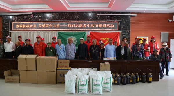 活動期間,志愿者們還和老兵們、留守兒童們溫馨合影,并將第二師天泰電力志愿者協(xié)會申請中國人權(quán)基金會1.57萬元資金購置的月餅、面粉、清油,圖書、文具用品送給抗戰(zhàn)老兵及留守兒童們,讓這些曾經(jīng)為國家獨(dú)立,民族解放浴血奮戰(zhàn)的抗戰(zhàn)老兵,以及留守兒童們感受到來自社會的關(guān)愛。