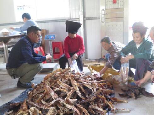 “供電公司扶貧隊到我們村后,鼓勵我們加工干筍、金銀花和葛根粉等,利用山里的寶貝創(chuàng)造價值”。 紫江村致富帶頭人趙新財指著裝袋打包的干筍興奮地說:“今年我按照駐村張書記的建議,開始搞春筍加工,雖然現(xiàn)規(guī)模還不大,加工1400多斤,也可賣到5萬多元,加上金銀花、葛根粉加工等收入,一年收入10萬元不成問題。”趙新財表示,山中氣候適宜種植黑木耳、香菇,他計劃成立專業(yè)合作社,購置烘干機,通過種植、加工、包裝一體化產(chǎn)業(yè)帶動周邊村民發(fā)家致富。