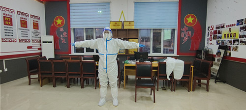 看著簡單,但是實際操作起來屬實不易。在該處團支部(青工委)書記講解完畢后,為了讓青工能夠切身感受穿戴防護服的過程,在參會的現(xiàn)場團員青年中挑選了一名志愿者進行了一次模擬穿脫防護服。青工李正陽在完成一整套防護服穿戴流程后已經(jīng)是大汗淋漓,他邊擦額頭的汗水邊感慨道:“這才是穿和脫就已經(jīng)累到出汗,那些一線醫(yī)護人員一穿就是十幾二十個小時,太不容易了,為他們的敬業(yè)精神感到欽佩。”
