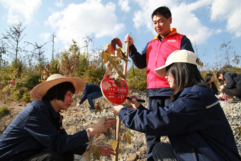 此次活動(dòng)主題為“助力‘雙碳’ 電力先行”,通過支部聯(lián)合共建,扎實(shí)推進(jìn)“黨建+”活動(dòng)。在植樹現(xiàn)場(chǎng),該公司員工拿起鋤頭、扛起樹苗,挖樹坑、栽樹、培土、澆水,大家合力栽下一株株楓香樹苗,踐行國家電網(wǎng)為美麗中國賦能的光榮使命,推動(dòng)節(jié)能減碳,助力“雙碳”。同時(shí),為增強(qiáng)儀式感,該公司還特別制作了“綠色古田 美化家園”愛心植樹牌,參加活動(dòng)的員工各自在牌子上寫上所在黨支部(工會(huì))以及植樹時(shí)間,給自己種的小樹苗掛上“身份牌”并紛紛合照留念。