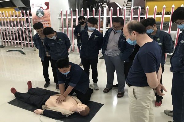 安全員李燾首先帶領(lǐng)大家觀看視頻教程,把心肺復(fù)蘇的整個(gè)過(guò)程,每一個(gè)細(xì)節(jié)都進(jìn)行了認(rèn)真的學(xué)習(xí),隨后在模擬人上進(jìn)行實(shí)際操作。安全員一邊做示范一邊講解如何掌握基本心肺復(fù)蘇的操作要點(diǎn)及注意事項(xiàng),并通過(guò)對(duì)“模擬人”實(shí)施心臟復(fù)蘇搶救操作進(jìn)行了演示,包括判斷是否喪失意識(shí)、判斷有無(wú)自主呼吸、判斷有無(wú)脈搏、進(jìn)行胸外心臟按壓、清理口腔異物、開(kāi)放氣道、人工呼吸等操作要領(lǐng)的示范。