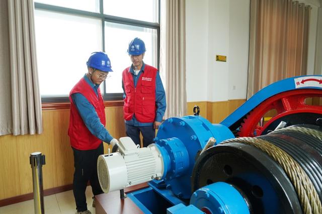 國家電網(wǎng)山東電力彩虹共產(chǎn)黨員服務(wù)隊隊員檢查許家崖水庫泄洪機(jī)組運(yùn)行情況。