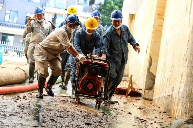 國網(wǎng)湖南婁底供電公司員工在平江縣桂花學(xué)校搶修中運(yùn)送發(fā)電機(jī)。