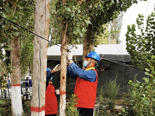 還沒(méi)休息幾分鐘又接到伊寧縣奎太買(mǎi)里村委會(huì)電話,“夏師傅,村委會(huì)要在村口建一個(gè)疫情檢查點(diǎn),需要接電照明,你們趕緊來(lái)處理一下。”黨員服務(wù)隊(duì)隊(duì)員夏文亮與他的搭檔做好消毒工作后,帶上安全工器具立即前往村委會(huì)防疫點(diǎn),經(jīng)過(guò)半個(gè)多小時(shí)的工作,村委會(huì)防疫點(diǎn)帳篷內(nèi)照明燈亮起來(lái)了。