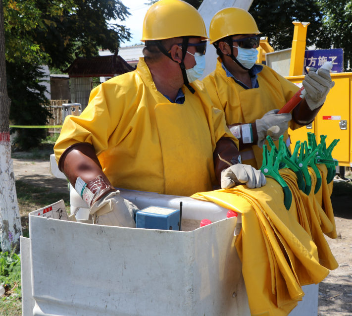 隨著絕緣斗臂緩緩下降,標(biāo)志著本次作業(yè)順利結(jié)束。“疫情當(dāng)前,發(fā)展的腳步不能停歇,政府招商引資的部分重點項目正處于建設(shè)的關(guān)鍵階段,我們要確保電力供應(yīng),全力助推各項產(chǎn)業(yè)穩(wěn)步推進。”居馬努爾將絕緣防護服里層像被“水洗”過的棉質(zhì)工作服換下,他表示雖然特種作業(yè)環(huán)境較為艱苦,但是每一次作業(yè)都有著重要意義,每順利完成一次作業(yè)自己的內(nèi)心又多一分自豪與安寧。