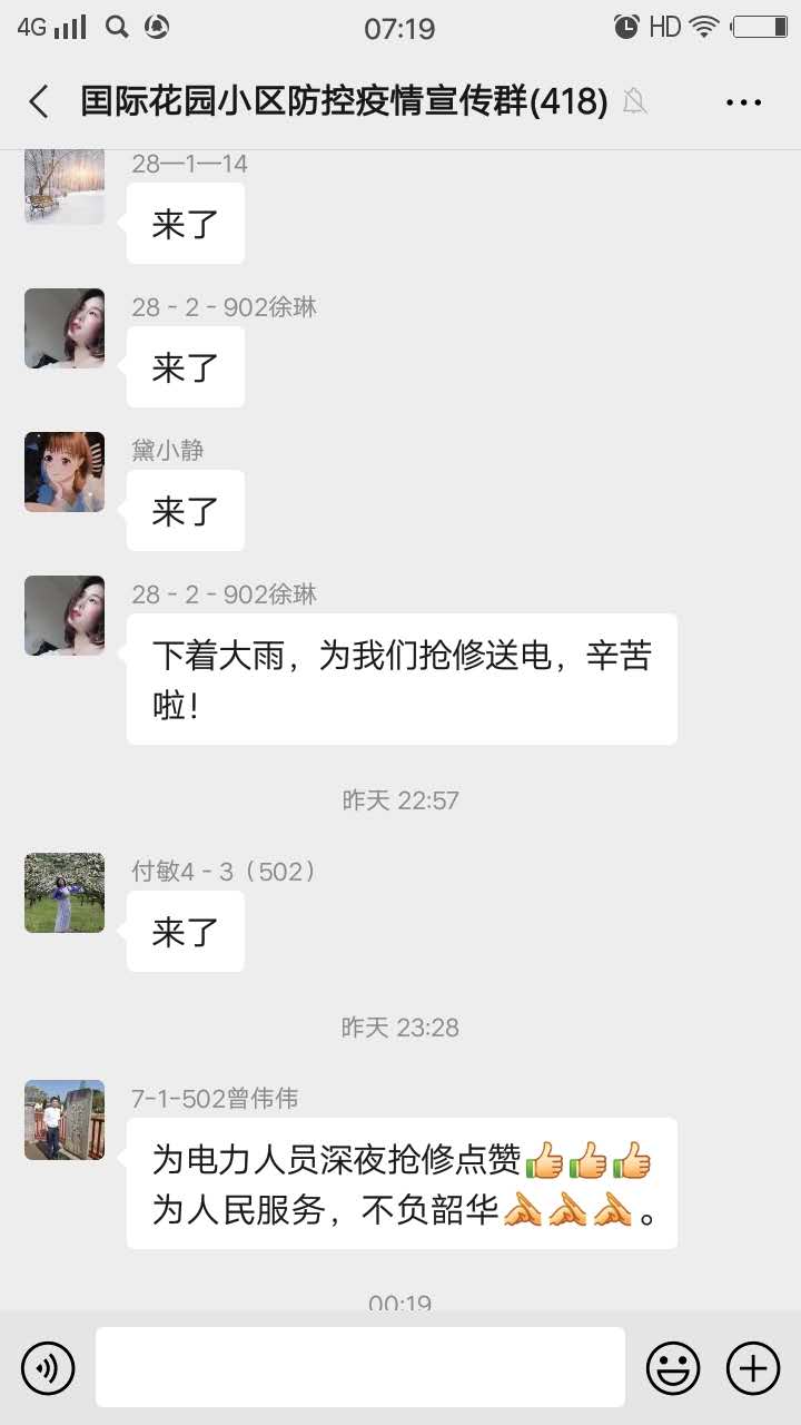 中國電力網(wǎng)訊 客戶又一次在微信群里表揚(yáng)國網(wǎng)南豐縣供電公司搶修人員“為人民服務(wù),不負(fù)韶華,”并為他們點(diǎn)贊。