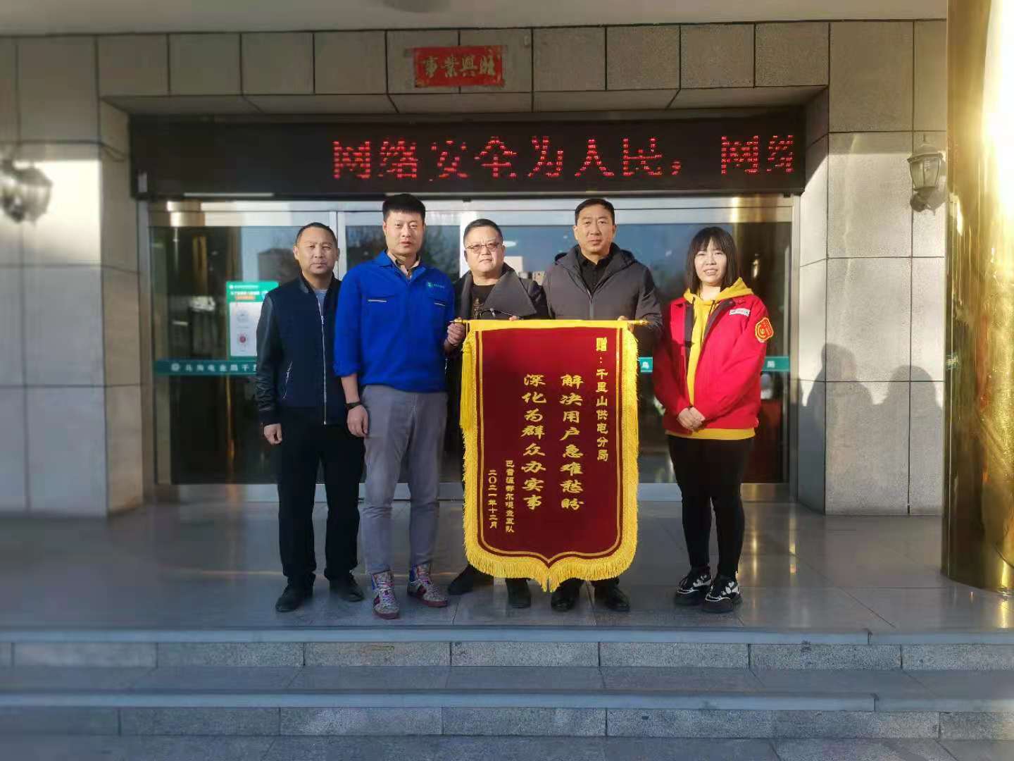巴音溫都爾嘎查五隊(duì)項(xiàng)目位于千里山供電公司轄區(qū)內(nèi),27戶農(nóng)牧業(yè)養(yǎng)殖戶沒有電用,飼料無法加工,卷簾機(jī)無法使用。千里山供電公司領(lǐng)導(dǎo)班子在得知情況后,高度重視,分管生產(chǎn)的默日根副經(jīng)理組織相關(guān)人員多次進(jìn)行實(shí)地勘察,組織立項(xiàng),勘察設(shè)計(jì)并組織了施工。當(dāng)天,烏海市千里山供電公司在家的領(lǐng)導(dǎo)班子接收了錦旗,與巴音溫都爾嘎查五隊(duì)物業(yè)公司宋經(jīng)理及村民何茂進(jìn)行了座談交流。烏海市千里山供電分公司領(lǐng)導(dǎo)班子表示,接下來,千里山供電分公司將會進(jìn)一步優(yōu)化營商環(huán)境,細(xì)化優(yōu)質(zhì)服務(wù),提升服務(wù)管控水平,為烏海市地方經(jīng)濟(jì)建設(shè)提高優(yōu)質(zhì)可靠的供電服務(wù)。