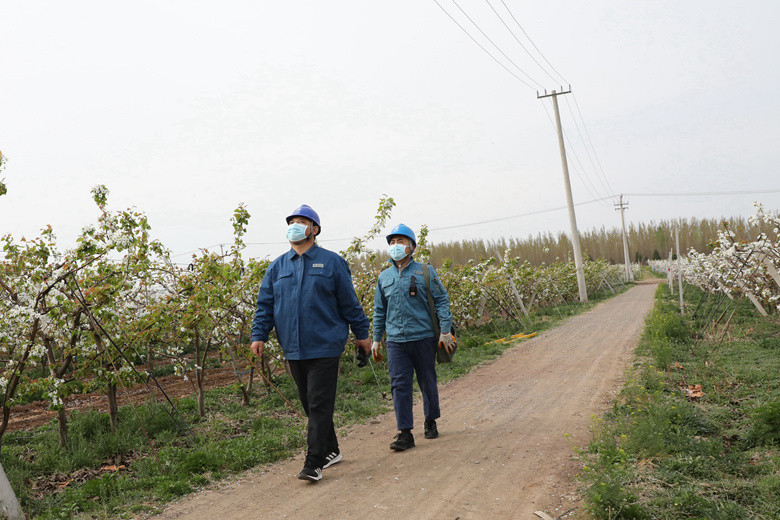 又是一年春草綠,朵朵梨花別樣鮮。遠(yuǎn)遠(yuǎn)望去,兩個(gè)“國網(wǎng)綠”穿梭在白色的花海中,描繪出一幅幅電力足、產(chǎn)業(yè)興、農(nóng)戶豐的美好花園。