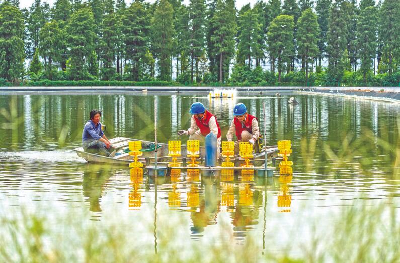 供電員工到高淳國家現(xiàn)代農(nóng)業(yè)產(chǎn)業(yè)園檢查增氧泵運(yùn)行情況。 杜懿 攝