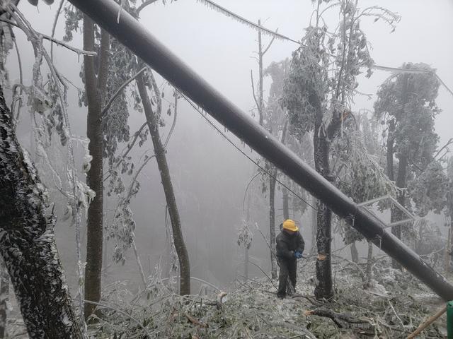為確保景區(qū)供電需求和游客安全,該公司組織30余名黨員干部職工兵分三路,一邊緊急調(diào)集大功率發(fā)電機(jī)抬運(yùn)至景區(qū),第一時(shí)間保障該線路用戶可靠供電,一邊協(xié)同云陽國家森林管理局、茶陵縣消防救援大隊(duì)緊急開展道路疏通搶險(xiǎn),一邊穿冰簾掃障礙,為搶修斷桿線路做準(zhǔn)備。到處是冰碴斷枝的山林里,不斷有晶瑩剔透的冰塊從樹上掉落,搶修人員一邊用柴刀對(duì)樹枝進(jìn)行清理,一邊爬冰臥雪艱難前行,清理道路,運(yùn)送桿線搶修物資,在零下冰凍的高山上,分秒必爭(zhēng)地投入到搶修中。