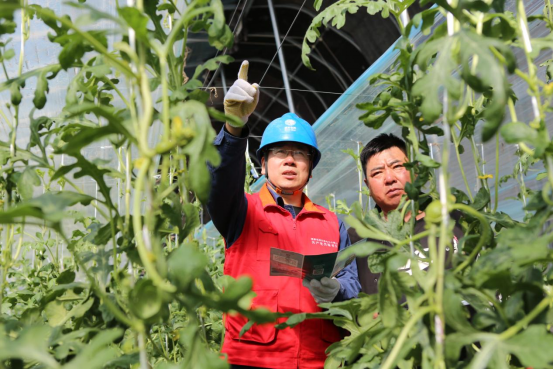 眼下,正值西瓜的膨果期,郝建正根據(jù)土壤濕潤(rùn)程度使用滴灌設(shè)備進(jìn)行澆灌,就迎來(lái)了電力“紅馬甲”的上門(mén)服務(wù)。