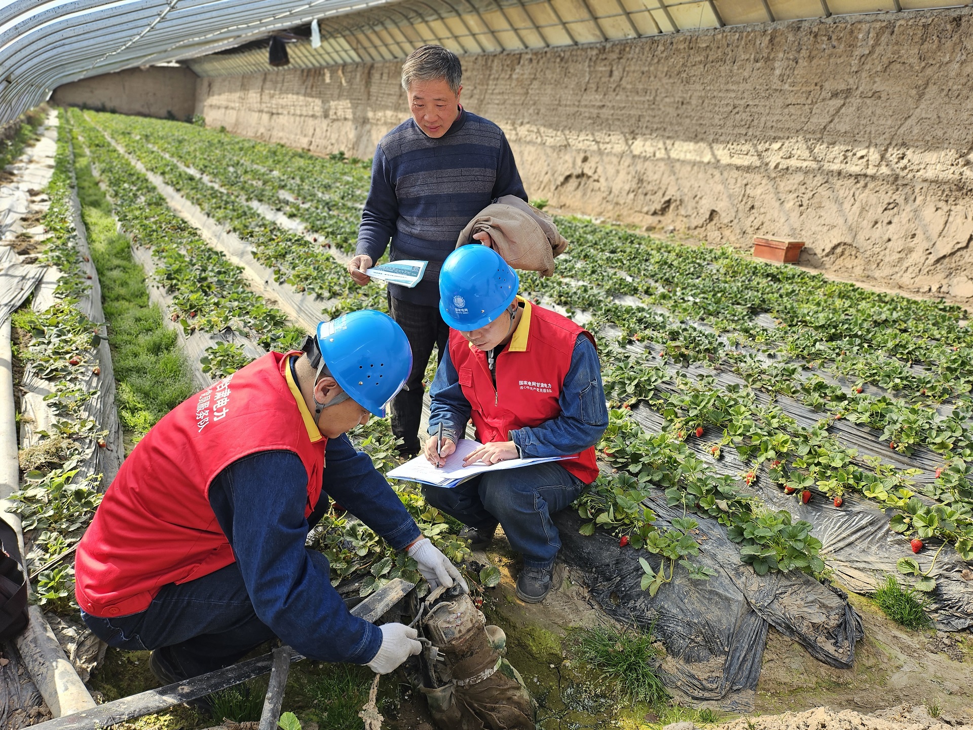 3月以來(lái),國(guó)家電網(wǎng)甘肅電力連心橋(一心百合)共產(chǎn)黨員服務(wù)隊(duì)到高原夏菜農(nóng)業(yè)生產(chǎn)一線,全力確保高原夏菜園區(qū)大棚的灌溉、照明、通風(fēng)、保溫等設(shè)施設(shè)備的電力可靠供應(yīng)。