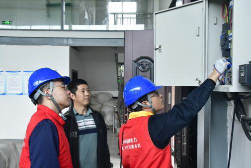 國網(wǎng)松溪縣供電公司黨員服務(wù)隊在龍源茶葉有限公司生產(chǎn)車間檢查用電開關(guān)(蔡政攝)