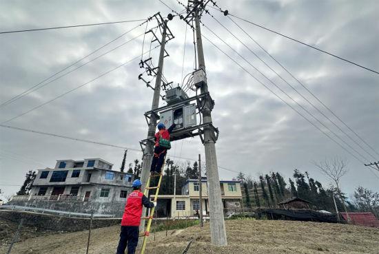 圖為國網(wǎng)重慶黔江供電公司員工在太極鎮(zhèn)巡檢變壓器等設(shè)備。文烽卜 攝