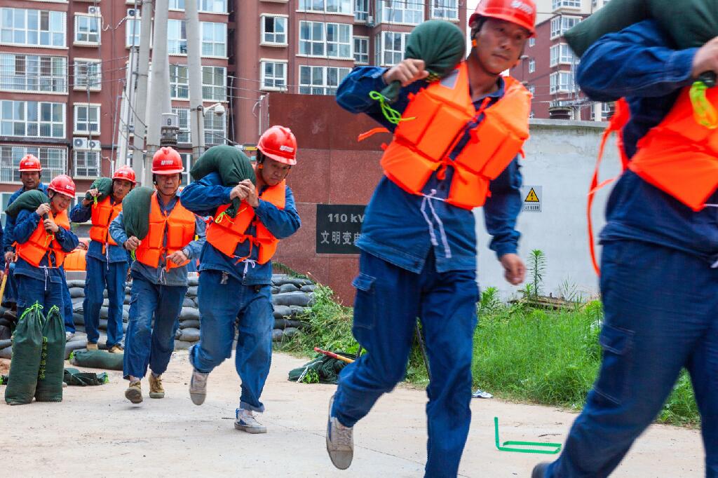 本次演練場景設(shè)置為滑縣遭受短時強(qiáng)降雨天氣,并伴有6到7級大風(fēng),降水量100-150mm,滑縣供電公司啟動防汛三級預(yù)警。110千伏變文明變電站電纜溝積水嚴(yán)重,站外雨水倒灌危機(jī)站內(nèi)設(shè)備安全運(yùn)行。該公司防汛應(yīng)急指揮中心立即下令,組織人員趕赴變電站現(xiàn)場,加固防汛擋板,擺放水袋水泵進(jìn)行電纜溝抽水,增加防汛沙袋快速封堵大門等工作有條不紊開展。在經(jīng)過快速的“防外、疏內(nèi)”后,變電站轉(zhuǎn)危為安,水位下降到正常水平。演練圓滿結(jié)束。