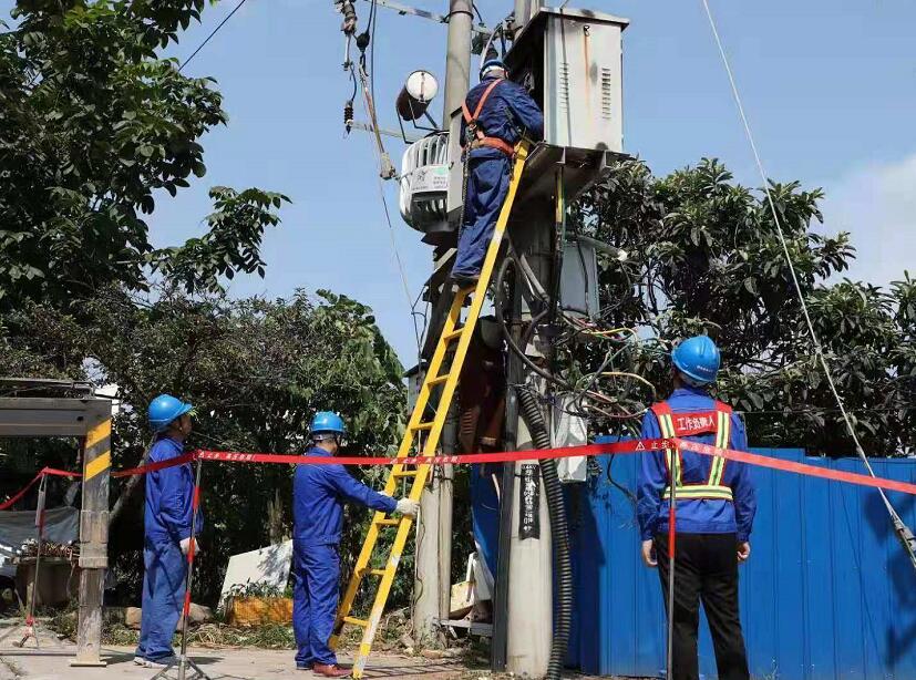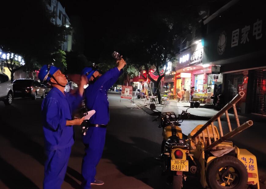 7月31日,國網(wǎng)南充市高坪供電公司工作人員對10千伏東岸線梧桐閣臺(tái)變及JP柜故障緊急搶修。(茍中華 攝)