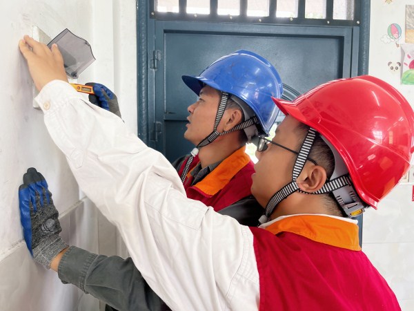 9月1日,在付坊小學(xué)校園內(nèi),該公司太和供電所黨員服務(wù)隊正在對學(xué)校線路、配電柜等供電設(shè)備的安全性能進行全面體檢,對可能出現(xiàn)的線路老化、銹蝕和漏電的地方進行全面檢查,對排查出的隱患及時維護,同時對室內(nèi)的開關(guān)、插座及用電設(shè)施進行隱患排查,讓廣大師生在新學(xué)期用上安全電、放心電。
