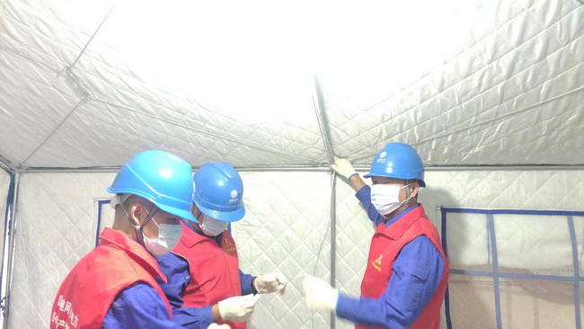 獲知信息后,共產(chǎn)黨員服務(wù)隊(duì)迅速在駐地準(zhǔn)備好照明燈、線材、插座等物資,向著廣場進(jìn)發(fā)。接線、固定、檢查,隊(duì)員們有條不紊的進(jìn)行著每一個環(huán)節(jié),不一會,核酸檢測點(diǎn)帳篷里的燈被點(diǎn)亮。
