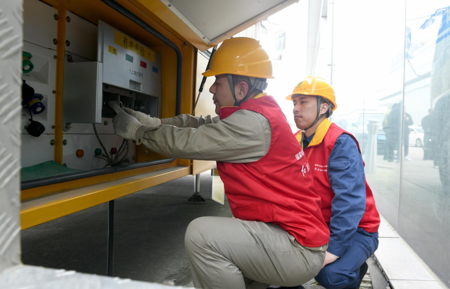 中國(guó)電力網(wǎng)訊(通訊員苗云夢(mèng)、秦蕾)3月27日下午,一臺(tái)黃色的400千伏安的自備電源車勻速駛?cè)胫兴車?guó)際會(huì)展中心,車輛停妥后,國(guó)家電網(wǎng)浙江電力(余姚)紅船共產(chǎn)黨員服務(wù)隊(duì)隊(duì)員陳啟鵬從工具箱里拿出工具,輕車熟路地開(kāi)始連接電源線,進(jìn)行移動(dòng)電源車調(diào)試,為塑博會(huì)開(kāi)幕式用電保駕護(hù)航。