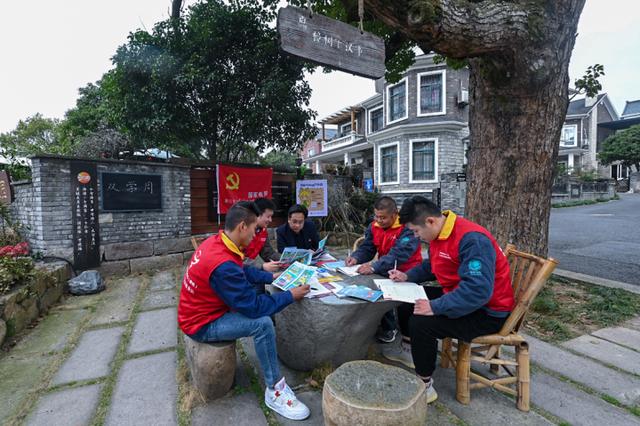 國網(wǎng)杭州市余杭區(qū)供電公司員工與小古城村村長商議低碳鄉(xiāng)村建設