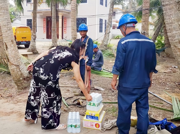 “感謝你們千里迢迢從貴州來支援我們,幫助我們搶修復電,太感動了!”海南省文昌市東郊鎮(zhèn)文龍村村民說到。村民們看著搶修人員辛苦的模樣,自發(fā)給大家送來了水和飲料解渴降溫,還為搶修人員帶路,加快搶修進度。