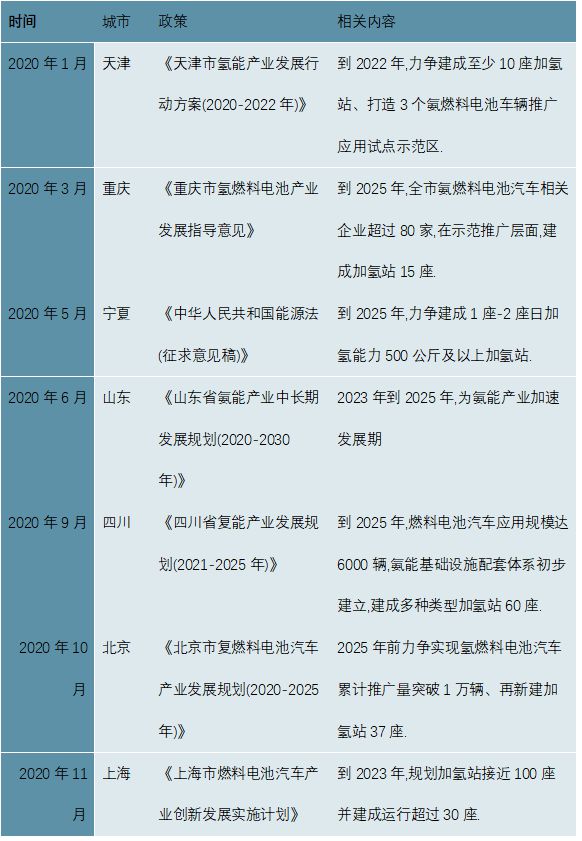 自2020年以來(lái),已有北京、上海、廣東、浙江等16個(gè)省市先后制定了氫燃料電池汽車產(chǎn)業(yè)相關(guān)政策和規(guī)劃,對(duì)加氫站的規(guī)劃建設(shè)、氫燃料電池汽車的推廣應(yīng)用、核心產(chǎn)業(yè)鏈的布局等都進(jìn)行了詳細(xì)布局。