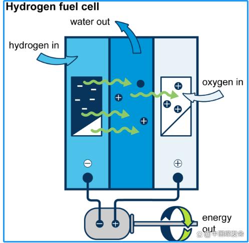 (氫燃料電池的工作原理圖,包括輸入和輸出。圖源:美國(guó)能源部能源信息管理局)