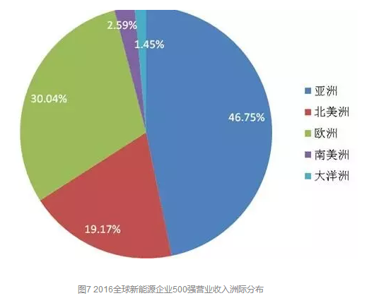 自2015全球新能源企業(yè)“500強”亞洲首次在入圍的企業(yè)數(shù)和其總營業(yè)收入額上全面超越歐洲后,今年亞洲在的企業(yè)數(shù)和其總營業(yè)收入額上拉大了與歐洲的差距,優(yōu)勢擴大。