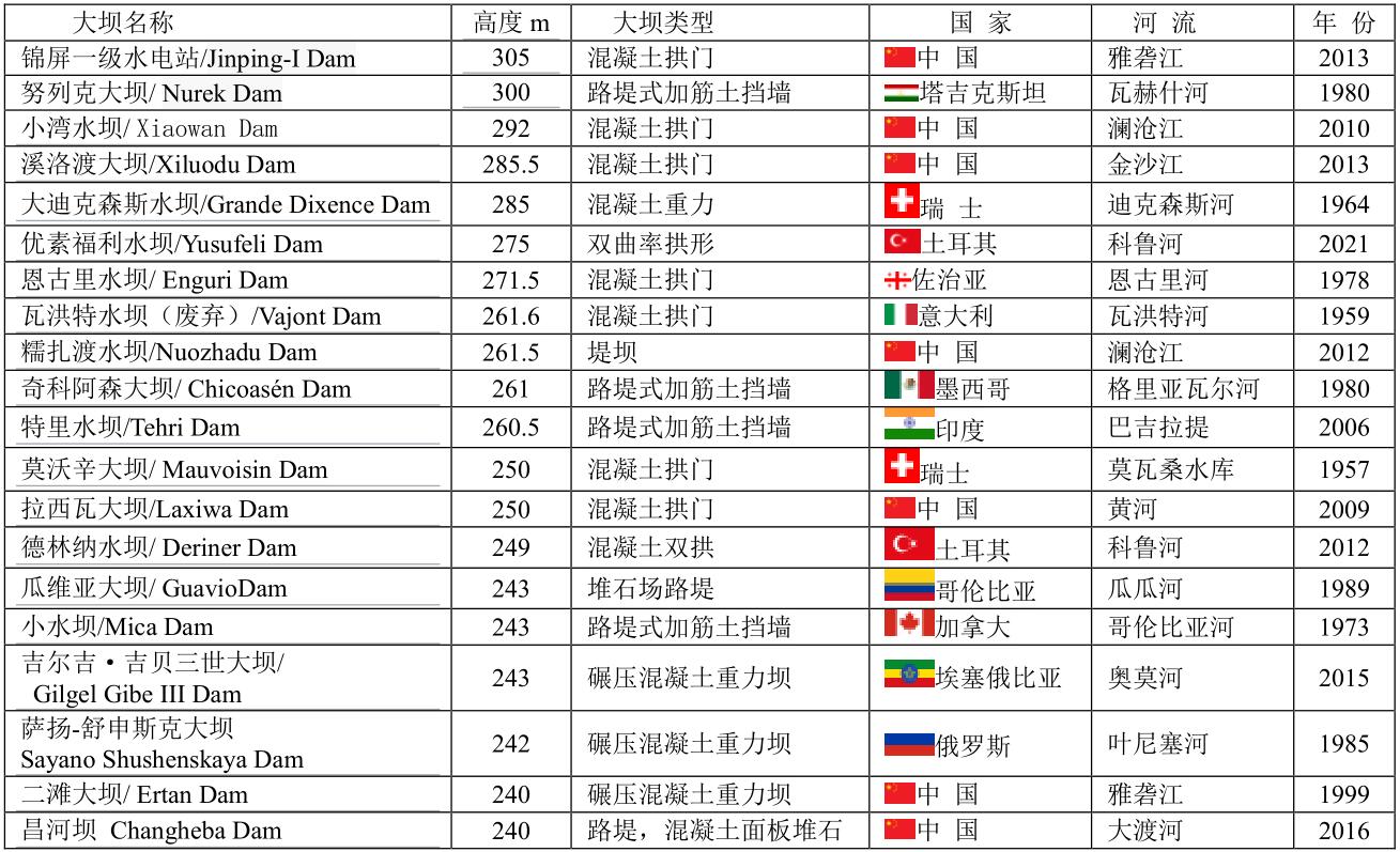 而今眼目下,大壩高度從135m到305m運(yùn)行的有241座;另外還有從135m到335m在建的大壩有30座。