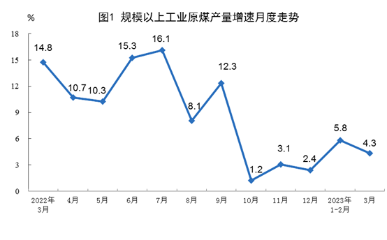 原煤生產(chǎn)穩(wěn)定增長,進(jìn)口大幅增加。3月份,生產(chǎn)原煤4.2億噸,同比增長4.3%,增速比1—2月份放緩1.5個百分點,日均產(chǎn)量1346萬噸。進(jìn)口煤炭4117萬噸,同比增長150.7%,增速比1—2月份加快79.9個百分點。