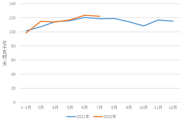分產業(yè)看①,1-7月,第一產業(yè)用電量634億千瓦時,同比增長11.1%;第二產業(yè)用電量32552億千瓦時,同比增長1.1%;第三產業(yè)用電量8531億千瓦時,同比增長4.6%;城鄉(xiāng)居民生活用電量7586億千瓦時,同比增長12.5%。