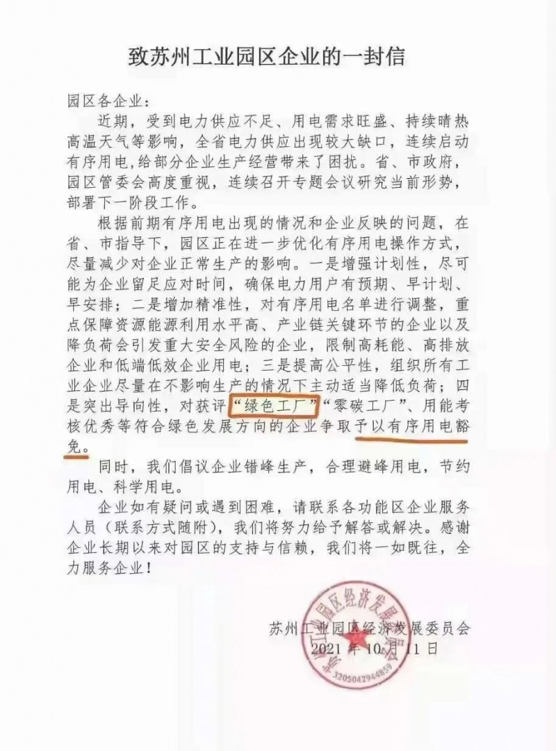 近期受到電力供應(yīng)不足、用電需求旺盛、持續(xù)晴熱高溫天氣等影響,電力供應(yīng)出現(xiàn)較大缺口,連續(xù)啟動(dòng)有序用電,給部分企業(yè)生產(chǎn)經(jīng)營帶來了困擾。在突出導(dǎo)向性中,提出對(duì)獲評(píng)“綠色工廠”“零碳工廠”、用能考核優(yōu)秀等符合綠色發(fā)展方向的企業(yè)爭(zhēng)取予以有序用電豁免。