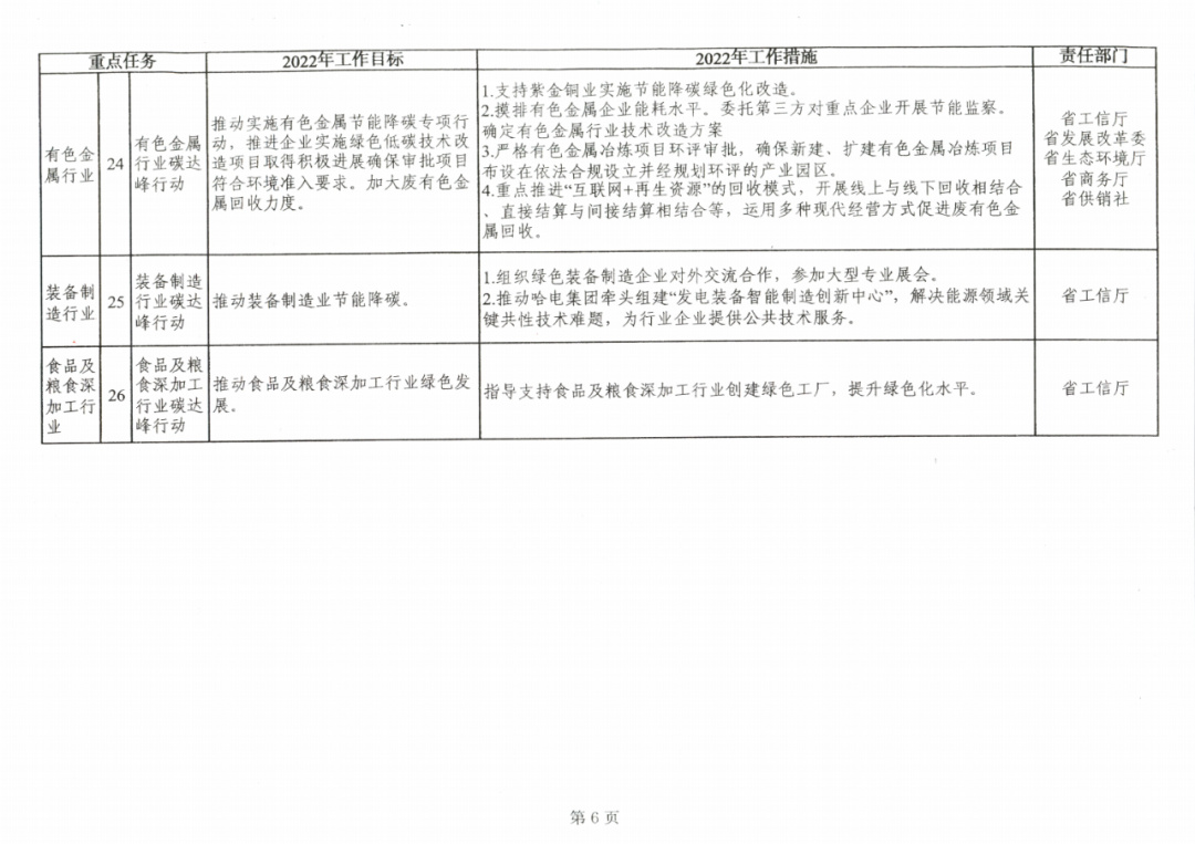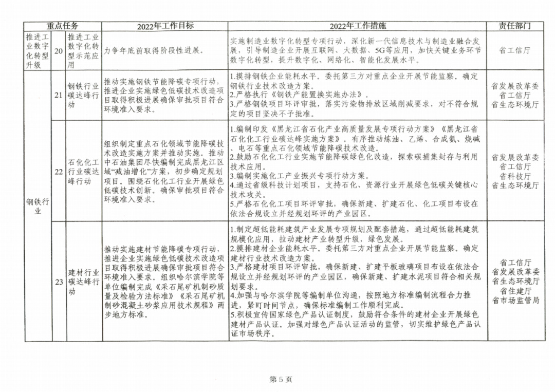 附件:《黑龍江省工業(yè)領(lǐng)域碳達(dá)峰實(shí)施方案》2022年工作計(jì)劃臺賬