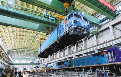中車大同電力機(jī)車有限公司研制的全球氫燃料電池裝機(jī)功率最大的“寧東號(hào)”機(jī)車。 李冬賓 攝