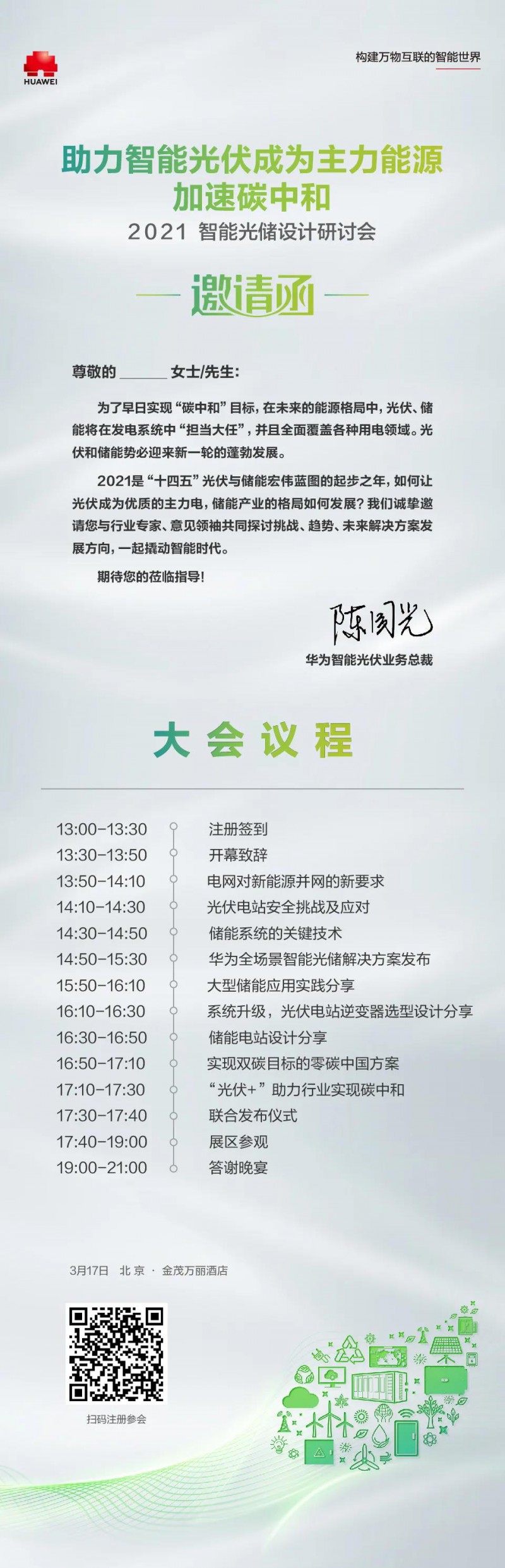 2021是“十四五”光伏與儲(chǔ)能宏偉藍(lán)圖的起步之年,讓光伏發(fā)電可儲(chǔ)可控,已成為能源轉(zhuǎn)型的必然選擇。如何助力智能光伏成為主力能源,促進(jìn)儲(chǔ)能、光伏產(chǎn)業(yè)協(xié)同良性發(fā)展,是實(shí)現(xiàn)我國(guó)碳中和目標(biāo)的重中之重。為了盡快迎接零碳時(shí)代的到來(lái),3月17日,2021智能光儲(chǔ)設(shè)計(jì)研討會(huì)即將在北京舉辦,掃描圖片下方二維碼即可報(bào)名參會(huì)!