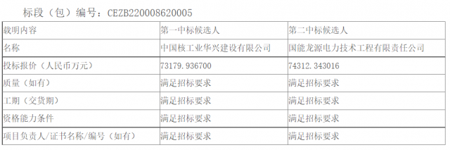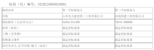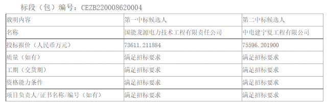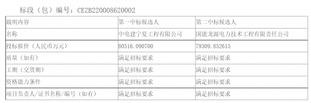 11月3日,龍源電力寧夏龍源公司“寧湘直流”配套新能源基地中衛(wèi)300萬千瓦光伏復(fù)合項目(一期100萬千瓦)光伏區(qū)EPC總承包公開招標(biāo)中標(biāo)候選人公示,中標(biāo)結(jié)果如下表所示。
