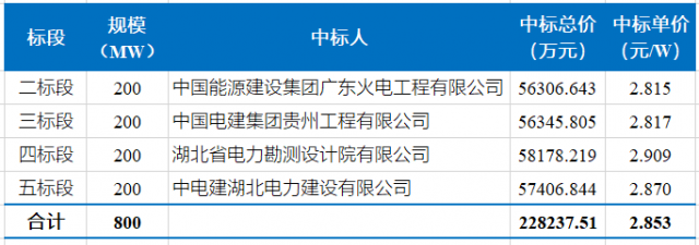 該項目EPC中標(biāo)價格在2.81~2.91元/W之間,如下表所示。