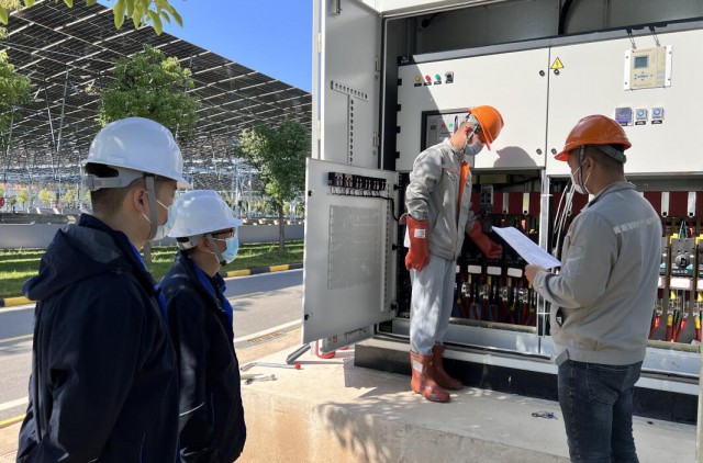 北湖污水處理廠承擔(dān)著半個(gè)武昌城的污水處理工作,為了確保光伏電站并網(wǎng)過程中及投運(yùn)后污水處理廠的正常運(yùn)營(yíng),綠色產(chǎn)業(yè)分公司的技術(shù)攻關(guān)、項(xiàng)目管理、運(yùn)維保障小組主動(dòng)擔(dān)當(dāng)作為,與北湖污水處理廠、武漢市供電公司等相關(guān)部門反復(fù)溝通,全程參與發(fā)電站并網(wǎng)方案的制定,以并網(wǎng)發(fā)電期間最大程度降低對(duì)污水處理廠運(yùn)行的影響為目標(biāo),以最短的時(shí)間、最優(yōu)的送電方式,最終制定并網(wǎng)發(fā)電實(shí)施方案,并保障了光伏并網(wǎng)發(fā)電期間廠區(qū)生產(chǎn)“零影響”。